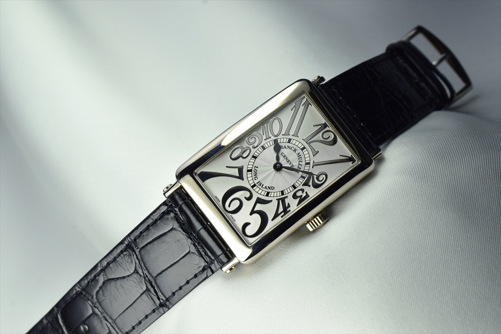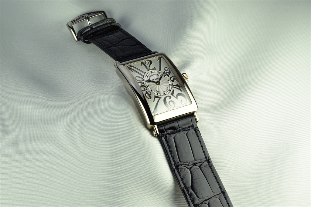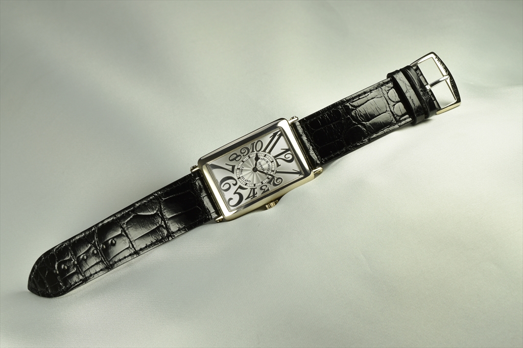 18Kホワイトゴールドのケースにレリーフ仕様のインデックスはビジネスでもお使いになれる品のよい輝きを蓄えており、レクタンギュラーケースは手首に美しく納まり、上品な佇まいを見せてくれます。