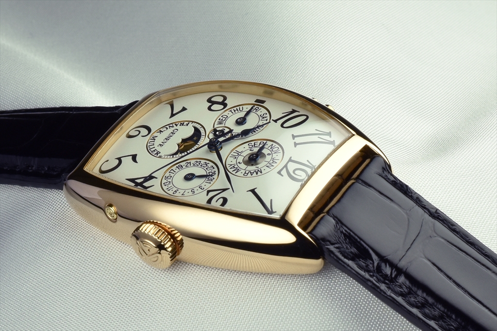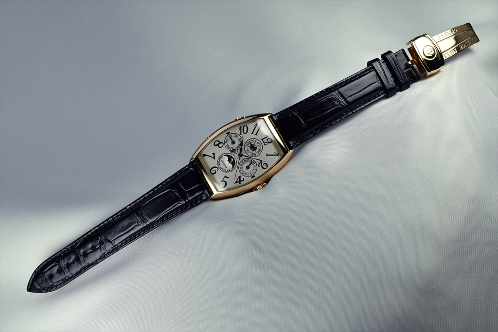 5850QP24 5N "トノウ・カーベックス パーぺチュアルカレンダー" です。パーぺチュアルカレンダーの複雑機構は、まさに時の歴史そのものを映し出しています。これまで、時間の計り方は長い歴史の中でたびたび変化してきました。太陽と月がかわるがわる暦法に影響を与え、その内容を決定していましたが、いずれも完全な暦とは言えませんでした。例えば1日の長さをとっても必ずしも24時間ちょうどで終わる訳ではなく、実際の1年の長さにしてみると365日と5時間49分というわずかな端数が発生してきます。