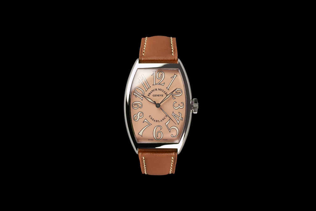 シルクサテンを思わせる光沢のあるトノウ・カーベックス。美しい3次元曲線のケースに何十年もの時代を経て出来上がるビンテージの彩りをあえて採用した文字盤にはBlack/White/Salmonの3種類があります。それぞれの文字盤の色には、モロッコ特有の風土がコンセプトとなっています。Salmon(サーモンピンク)は、サハラ特有の赤みを帯びた砂漠の砂や砂岩の色をイメージしてつくられました。そして文字盤は時の経過と共にエイジング(経年変化)するように加工されています。その時計の所有者が過ごした時の経過とともに文字盤上に歴史として刻まれていきます。これもまたフランク ミュラーがコンプリケーションとは違った角度から構想した時計の愉しみ方です。