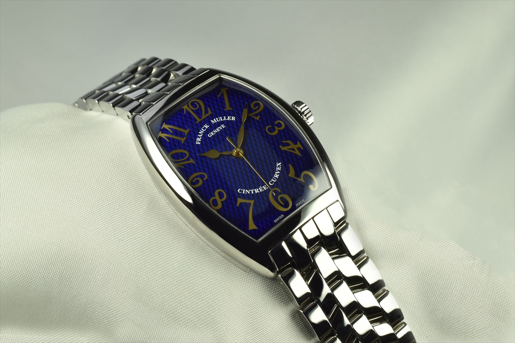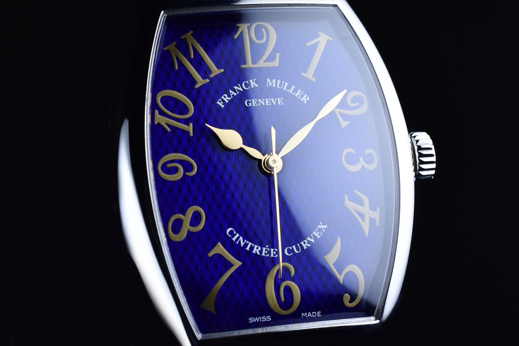 シンプルな3針ウォッチです。「複雑時計の巨匠」フランク ミュラーは節目の年の記念モデルをコンプリケーションにせず、その代わりに貴重な象徴を与えました。この時計の文字盤表面に施されたギョウシエは籐の籠を編んだような格子模様です。見慣れないこのギョウシエは、フランク ミュラーにとって特別な意味を持つものなのです。