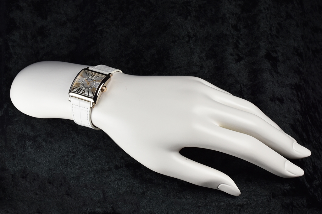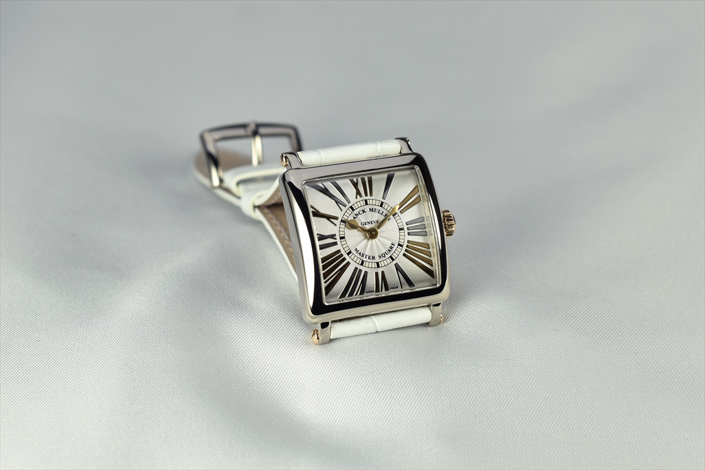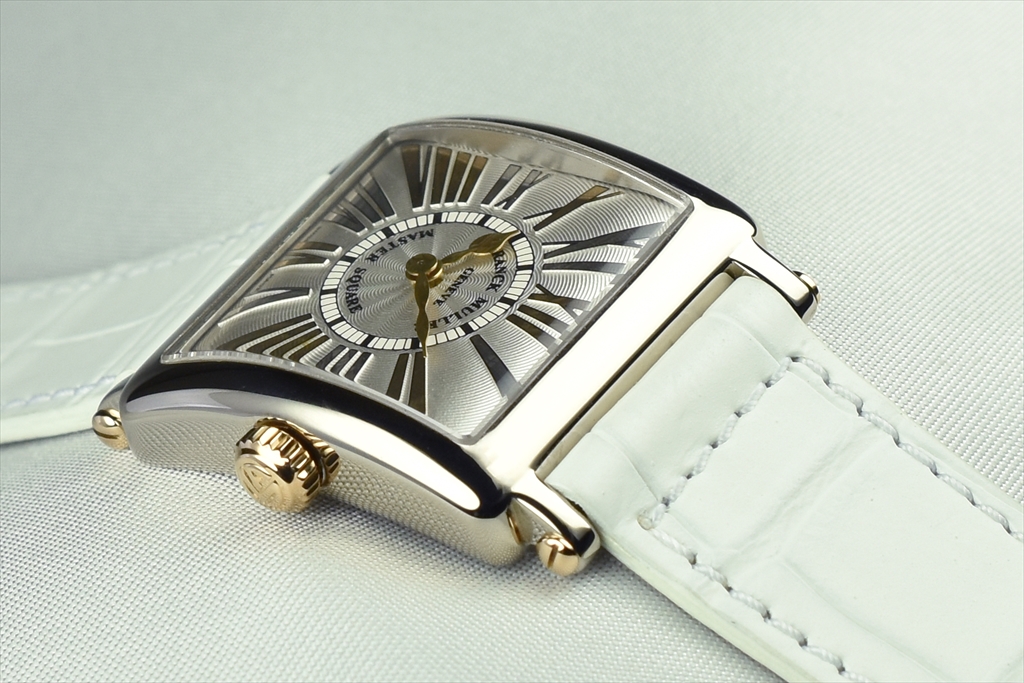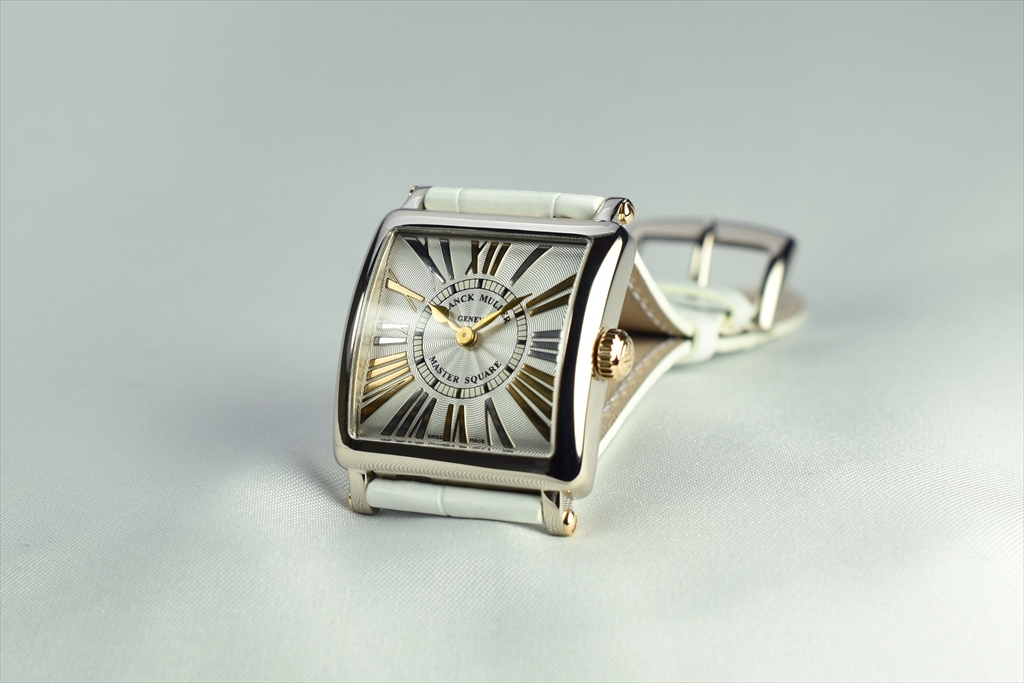 従来のラインナップにはない斬新さと優雅さが微妙なバランスで両立し、クラシカルとエレガントを兼ね備えた洗練されたデザイン。それまでフランク ミュラーの代名詞であったトノウ カーベックスやロングアイランドに加えて、均整のとれたデザインバランスにも新たな哲学が注ぎ込まれたこの新たなコレクションには「マスタースクエア」という名がつけられたのです。独特のカーベックス シェイプによって与えられるその絶妙な付け心地は、このモデルにおいても受け継がれています。