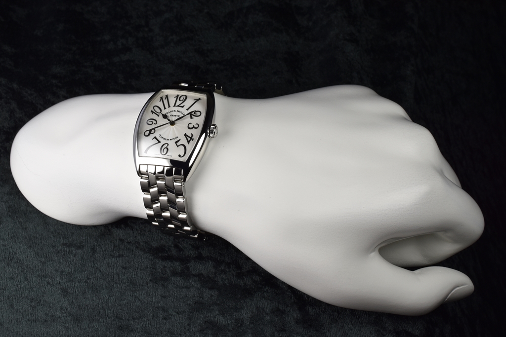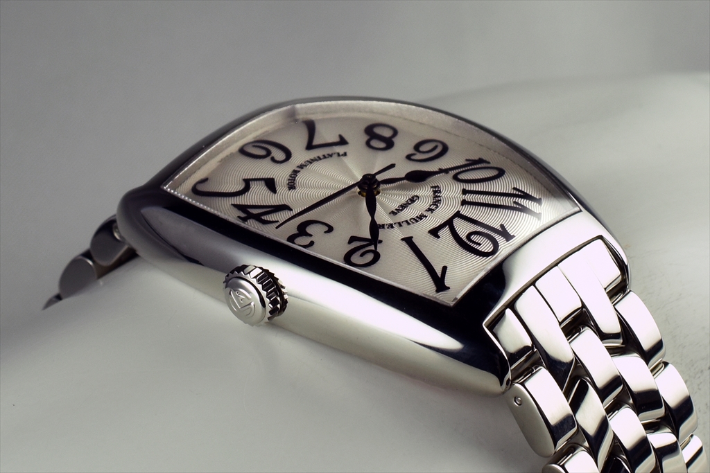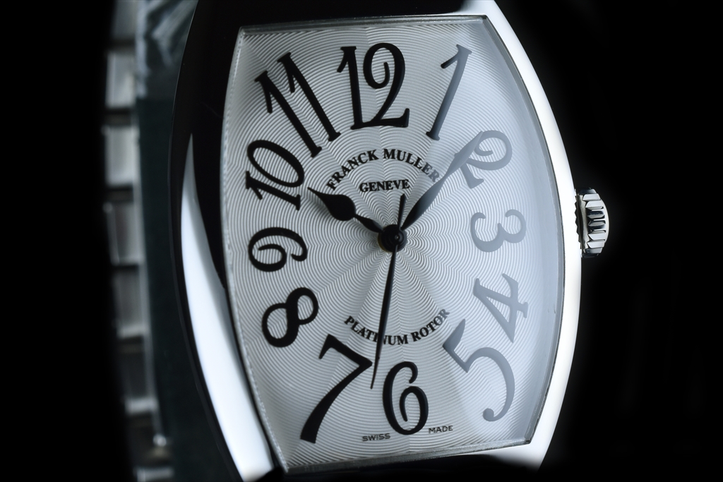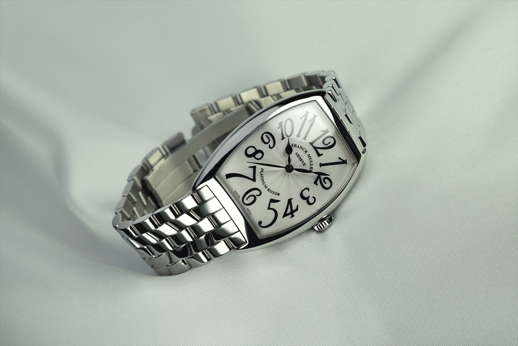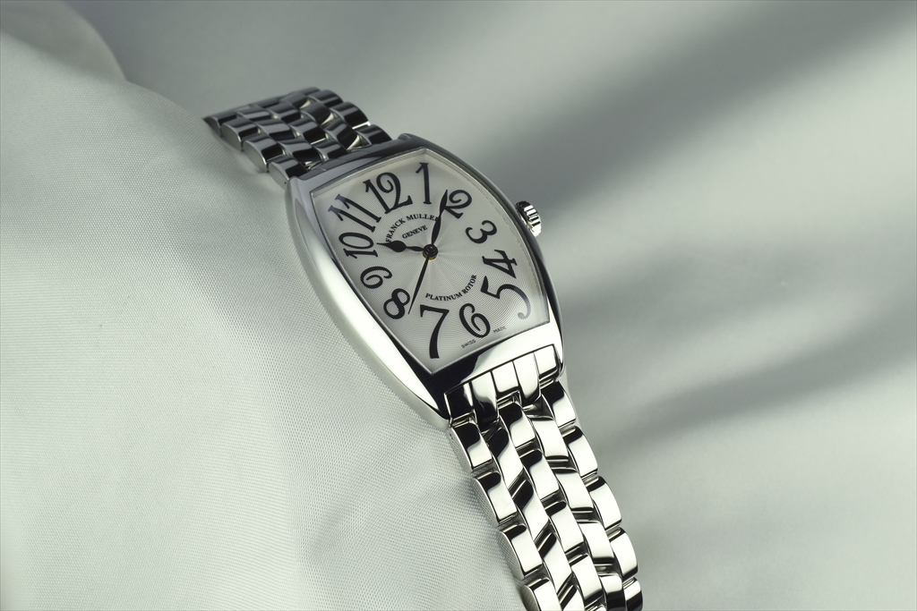 典型的な20世紀のアールデコ様式のデザインを蘇らせながら、現代のスタイリッシュなデザイン感覚をも併せ持つトノウ・カーベックスは、裏蓋、文字盤、サファイアガラスまでもケースに合わせて正確に仕上げるため、極めて精巧な工作技術が要求されます。こちらのモデルはギョウシェが入った白の文字盤の上に配置された華奢なビザン数字のインデックスと繊細なラインのスペード針が上品さを醸し出しているフランク ミュラーの代表的作品です。