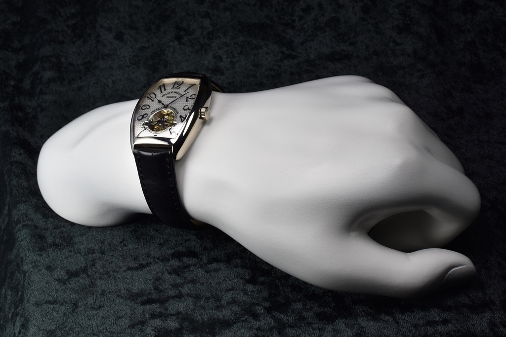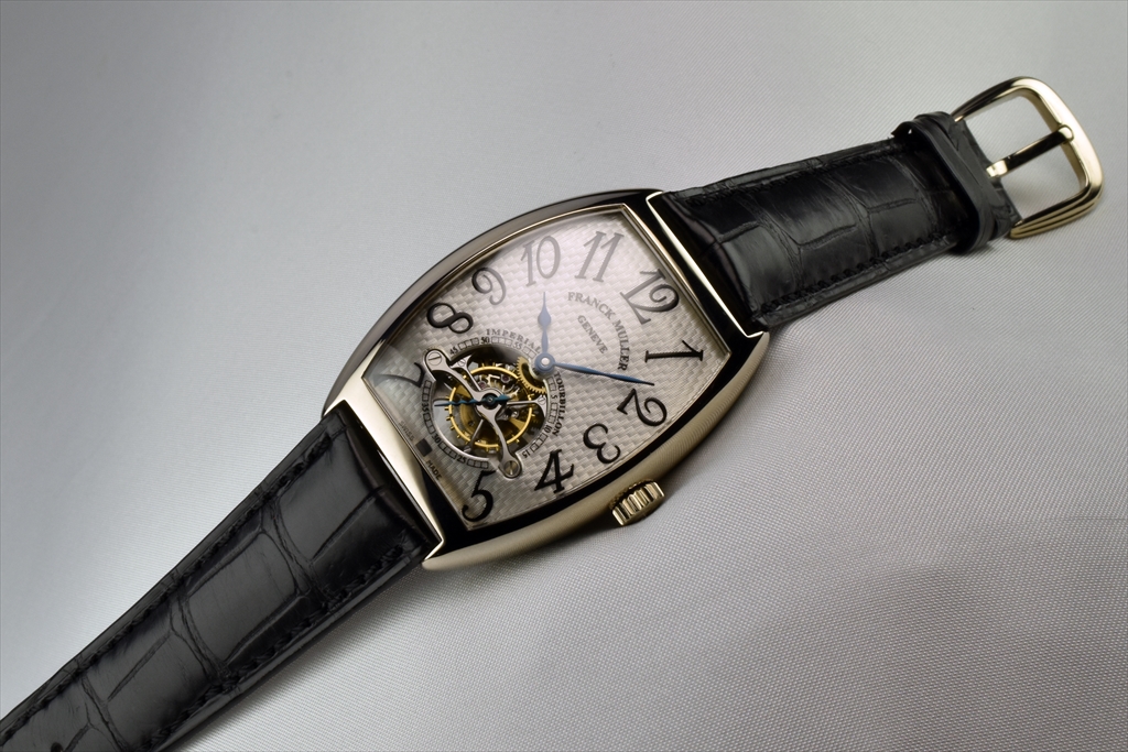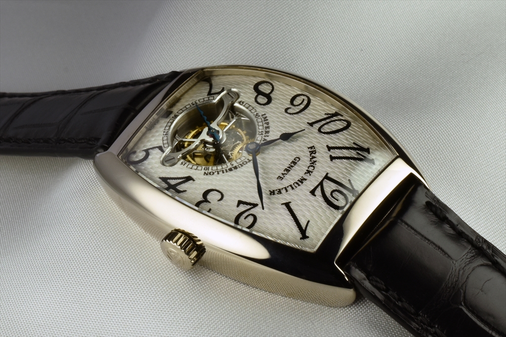 今から約200年前、置き時計から懐中時計へと移行した時代、姿勢差による誤差を安定させる為に開発された当時画期的なシステムでしたが、その並外れた繊細さと複雑さから、極めて高度な技術を持った一部の時計師以外、これを製作する事が出来なかった為、一般に普及するまでには至りませんでした。そして今から26年前となる1986年、当時若干28歳のフランク ミュラーは、腕時計のトゥールビヨンの製作に成功しました。そのトゥールビヨンは懐中時計のムーヴメントよりもはるかに小さく、すべて極小のパーツによって構成され、より高度な技術を要求されながらも、動きの激しい腕に付けても故障が少ない画期的なフリーオシレーション(自由振動)システムという独自の機構を開発しました。