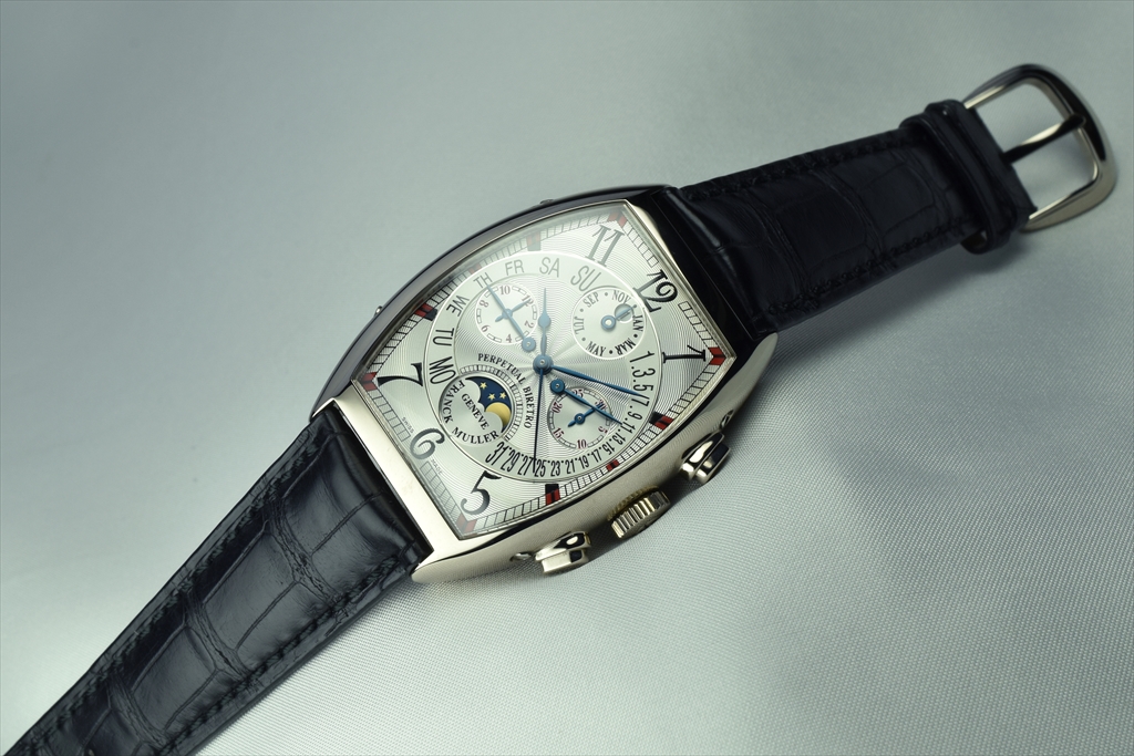 フランク ミュラーらしい、独創的かつ大胆なアレンジの効いたデザインでありながらも、それはトノウ カーベックスの上品なケースに見事にマッチしており、それが決して奇をてらったものではなく緻密に計算されたものであること、伝統を尊重しながらも個性を落とし込むフランク ミュラーの1つの哲学が溶け込んでいるかのようです。
