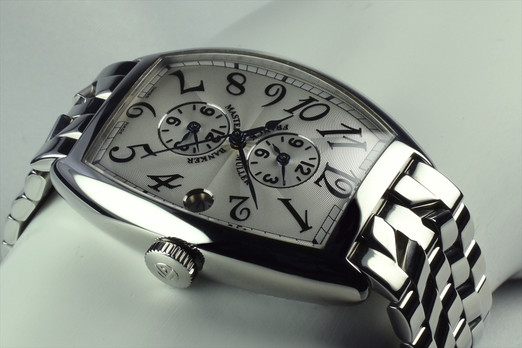 フランク ミュラーはマスターバンカーの制作過程において複雑な構造をシンプルな設計に創り変える為に時間がかかったと説明しています。世界初のGMTの機能もさることながら時計の美しさにまで拘った作品こそ、天才時計師フランク ミュラーの叡智が凝縮された代表作でないでしょうか。