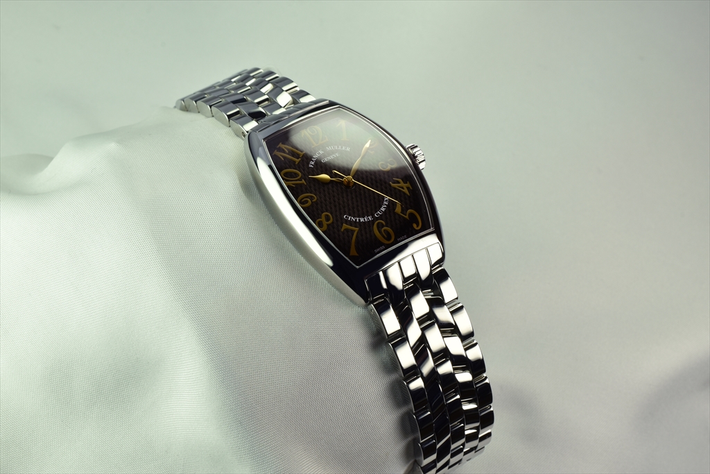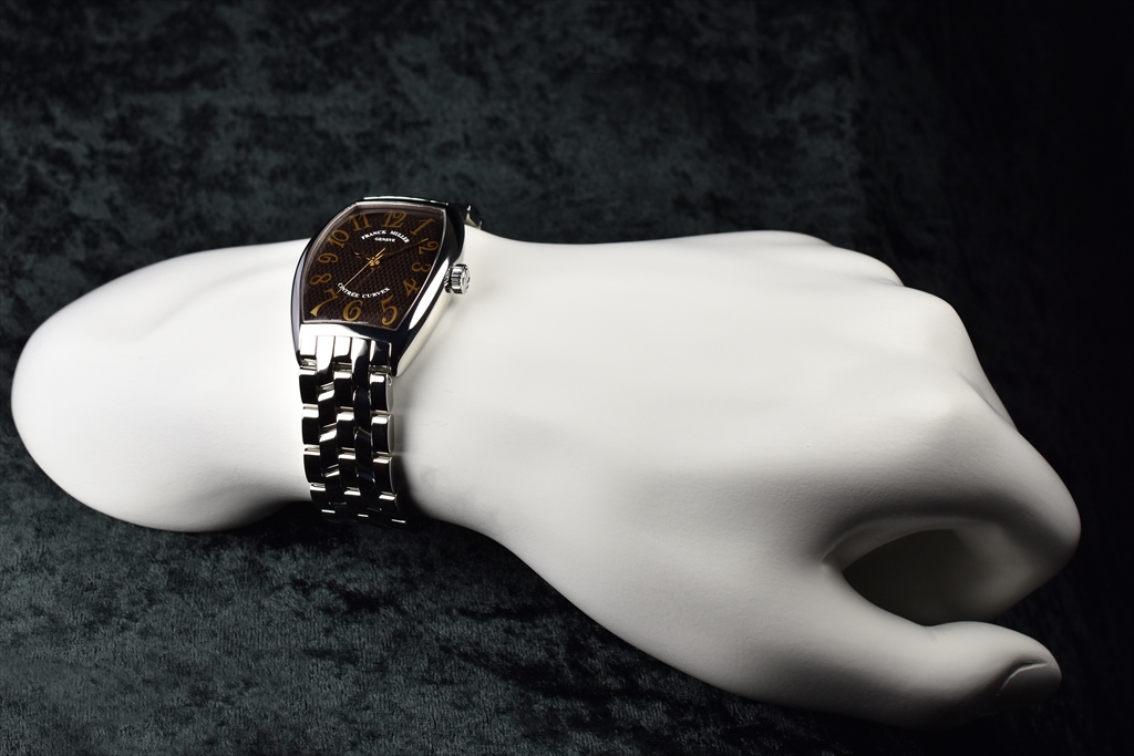 シンプルな3針ウォッチです。「複雑時計の巨匠」フランク ミュラーは節目の年の記念モデルをコンプリケーションにせず、その代わりに貴重な象徴を与えました。この時計の文字盤表面に施されたギョウシエは籐の籠を編んだような格子模様です。見慣れないこのギョウシエは、フランク ミュラーにとって特別な意味を持つものなのです。