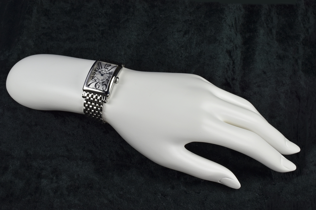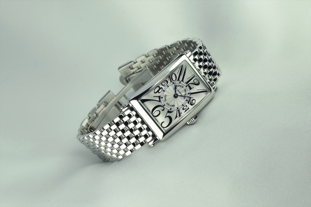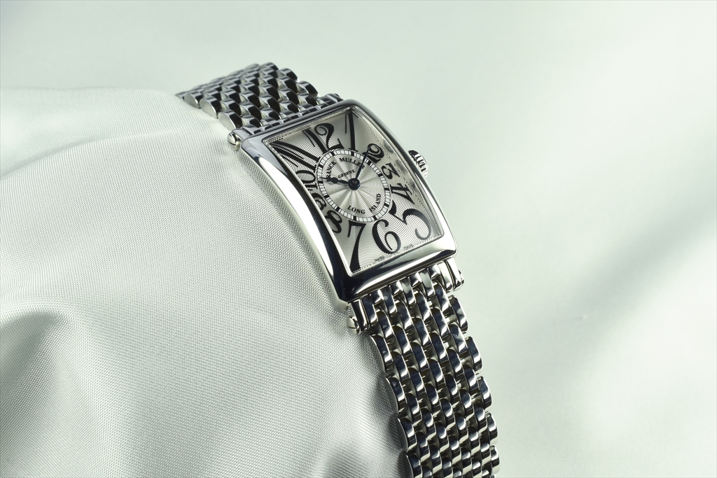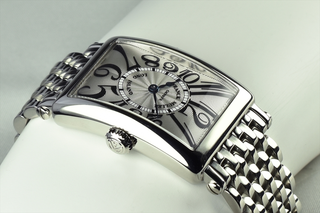 独特の直線ケースと文字盤上に直線を軸に現代風にデザインされたビザン数字が組み合わさった、まさにクラッシックとモダンの融合を象徴するフランク ミュラーならではのロングセラーコレクションです。特徴としては、ケースと調和したラグがあり、上下に長くしたケースと流線型のフォルムによって手首にフィットさせるなど、華やかで精緻なアールデコスタイルが随所に凝縮されています。